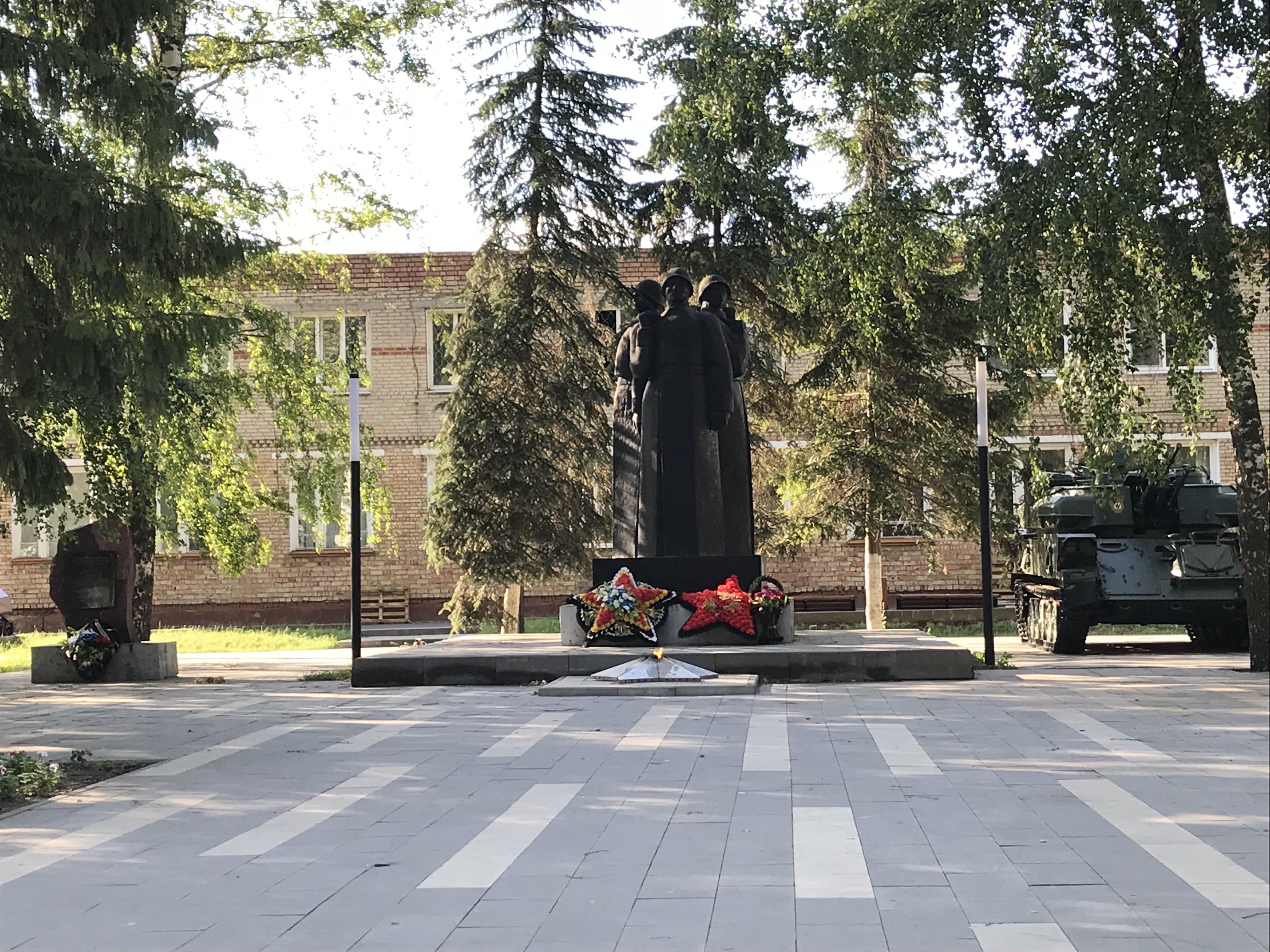 Благоустройство части улицы Советской и Аллеи Воинской Славы, Пензенская область, р.п. Башмаково (для благоустройства территории использовались крупноформатные плиты Урбан в размере 600х300х60 мм серии Nature, цвет белый и серии Standard, цвет серый)