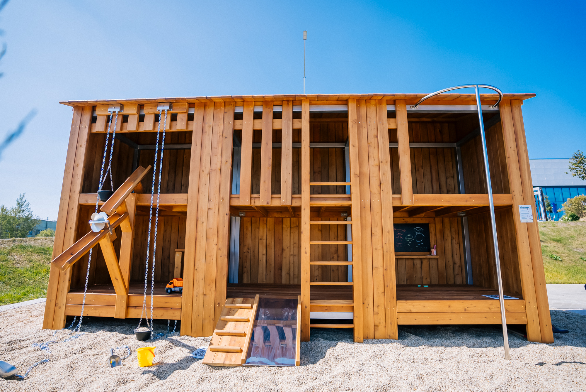 Группа компаний «Каменный век» представила свои инновационные разработки в сфере создания качественных общественных пространств. В центре внимания оказалось новое направление компании – современные дизайнерские детские игровые комплексы «Экотэч Детям». Детская площадка «Домовёнок» рассчитана на самых маленьких пользователей, она обладает продуманной эргономикой и бесконечным количеством сценариев для игр. Модульный детский комплекс «Лесной дворец» подойдет для тетей постарше, он имеет множество различных конфигураций и вариантов наполнения как для интеллектуального, так и для физического развития детей. Экологичные и прочные скамейки из массива дерева обрели возможность оборудоваться спинками и столиком для более комфортного отдыха. Все комплексы изготовлены из натуральных материалов и имеют 100% отечественные комплектующие.